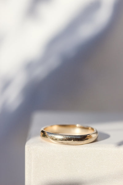 Our VOWS BAND. A half round light comfort fit flat band available in varied thicknesses. Engraveable and customizable.