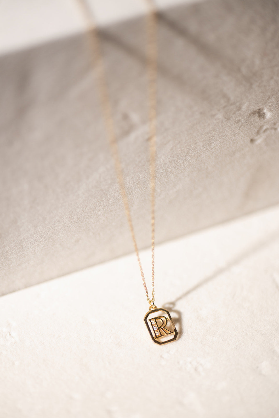 An ode to its organic shape, a tiny shell is fastened horizontally from a 16" chain. Finished with an asymmetrically set string of diamonds reminiscent of light rays catching water. A small pearl sits fastened within the shell to add a touch of romance. A delicate summer souvenir made everlasting to hang around your neck. Wear it layered with other necklaces or as a standalone statement.