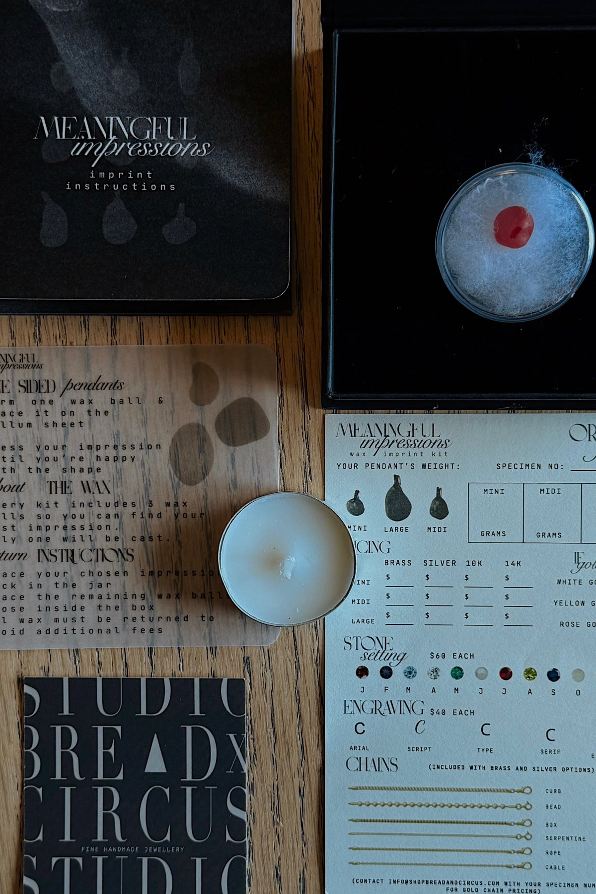 Finished pieces are professionally cast and polished after the session and will be ready for pickup or shipping within 4-6 weeks depending on customizations.